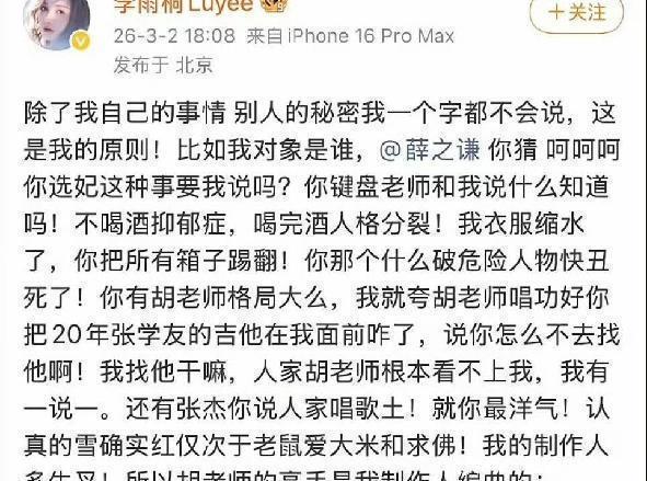 薛之谦当薛之谦的名字忽然闯入热搜榜单时,许多人都觉得挺意外的。这次他登上热搜,可不是因为新歌或者演唱会,而是被前女友李雨桐公开指控“重婚”。
